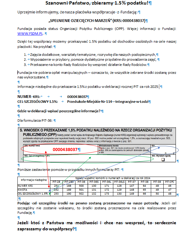Zachęcamy również do wizyty na stronie fundacji w celu zapoznania się z projektem 1,5% dla Edukacji oraz innymi działaniami wspierającymi dzieci i młodzież